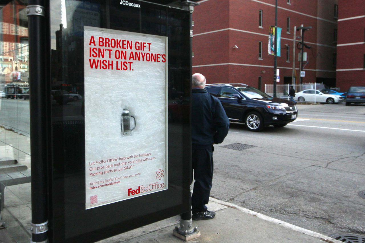 The holidays can be stressful. The shopping. The traffic. The worrying whether the glass Panda figurine you shipped to Aunt Gertrude is going to arrive with its cute little paws intact. It’s a lot to handle. To promote their Pack and Ship services, we launched an integrated campaign that gave shoppers the peace of mind that their gifts would end up under the tree and not in the trash. We created contextual newspaper and OOH ads, banners that let you relieve some holiday stress, and even stuffed bus shelters in and around Chicago with bubble wrap and fragile items to bring the Pack and Ship message to life.